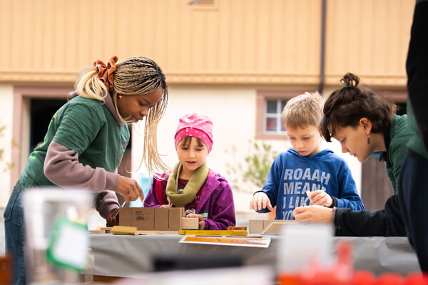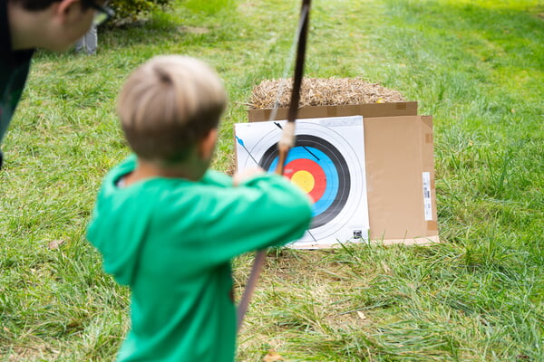 Ganz praktisch geschieht das in Workshops wie Bogenschießen, Outdoor-Techniken, Kreatives Werken und Holzwerkstatt, wo die Kinder Neues lernen und ihr Können erweitern.
